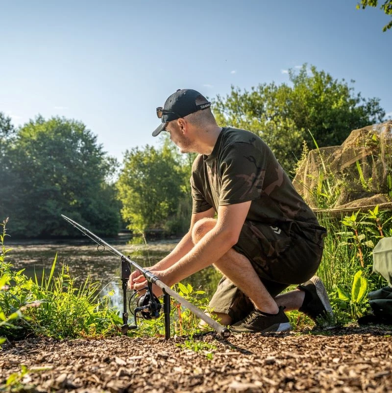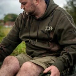 Comfy Camouflaged shorts from Daiwa sporting the Daiwa logo on the left pocket. With an elasticated waist with draw cord and zipped hand pockets. Â
