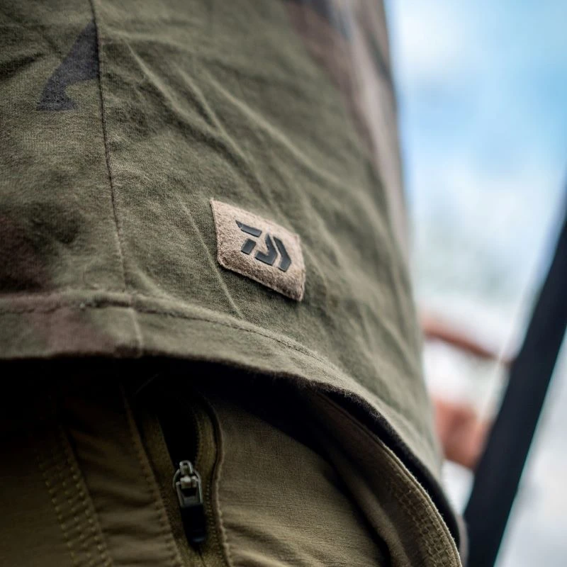 A smart pre shrunk camo T-shirt from Daiwa sporting the Daiwa logo on the chest.