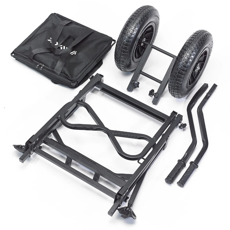 A lightweight extendable barrow from Daiwa, designed to carry your seatbox with the footplate fully extended. Featuring a twin wheel design that makes them super stable when loaded up with all your gear. The aluminium frame dismantles completely for storage and transport when not in use and the back lag height is adjustable.Â