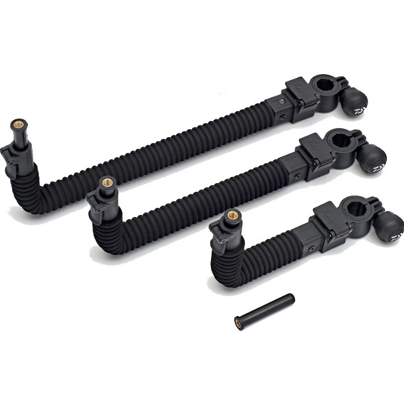 Daiwa D-Tatch Accessory Arms, rock solid supports with inserts to fit 19mm Square / 25mm and 36mm round legs. They all feature an extending bankstick with a standard thread and a locking cam on the far end to take any compatible accessory you want to add. Available in short, medium and long size options.