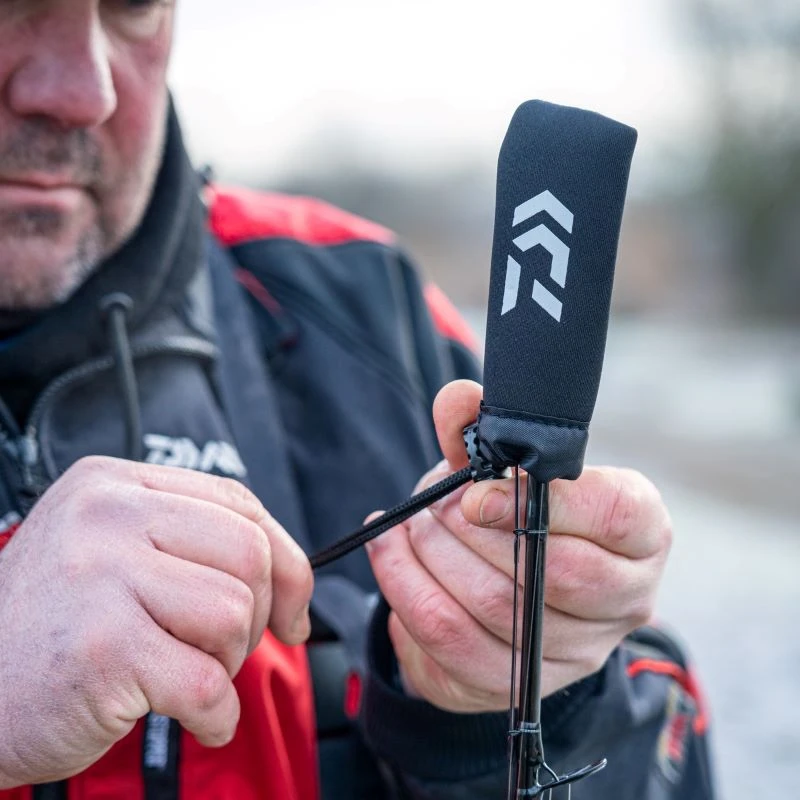 Daiwa’s DVEC rod bands, part elasticated sleeves for your tip and but sections along with a pouch that closed over the reel seat and reel itself. An ideal way to offer protection for your made up outfits when transporting ready rod holdalls and sleeves. The tip sleeve is sperate to prevent any undue pressure on delicate rod tops and feeder tips. This also means they’re able to accommodate rods of all sizes.Â