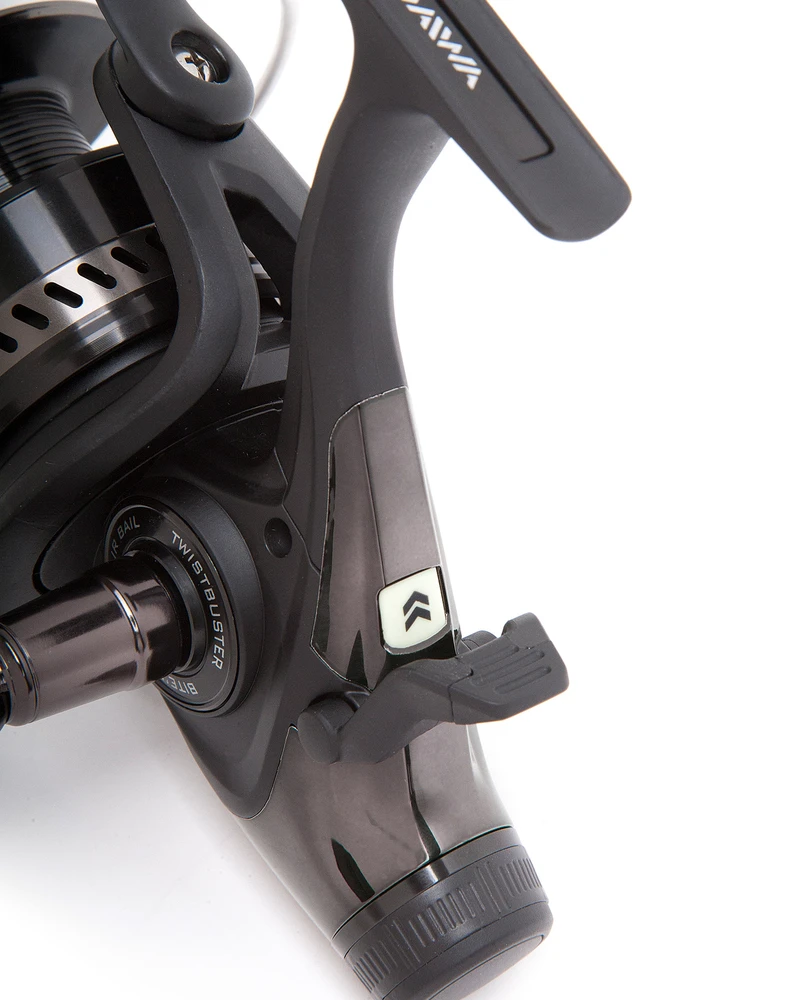 The elegant and lean Emcast BR is bursting with features and offers remarkable value. Leading with Daiwa’s tried and tested Bite ‘n’ Run function, with the added benefit of a front drag giving the big fish angler ultimate control. With no less than 8 ball bearings ensuring a smooth retrieve and fish playing performance. The front drag reacts quickly to sudden lunges, protecting valuable hook holds.  Equipped with Daiwa Air Bail, Twistbuster and Castlock technology as seen on their higher end reels. All models in the range come supplied with a single and double handle option as well as a full spec spare spool.