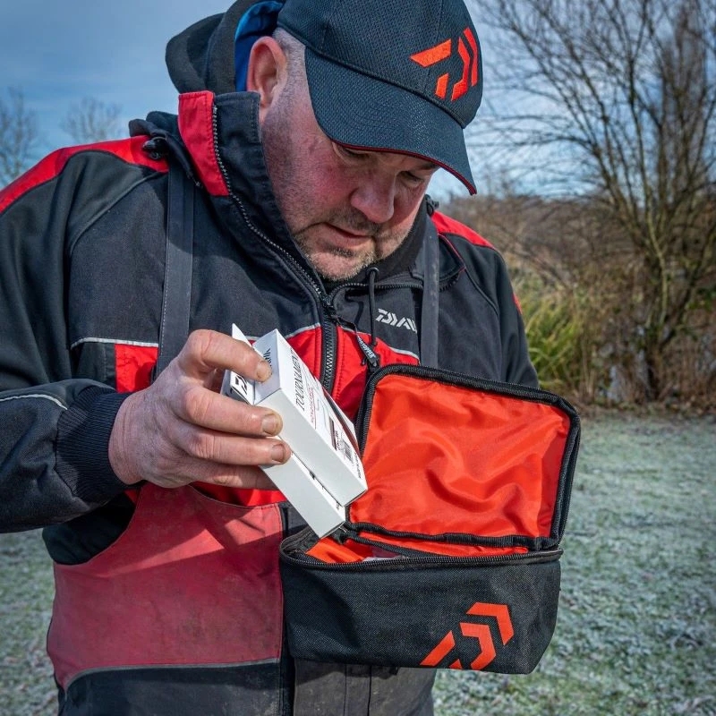 Daiwa Matchman Bitz Bags, neat zip up bags for your tools and accessories. Available in two size options, both featuring a red inner lining and a clear plastic window so you can see the contents without opening them up.