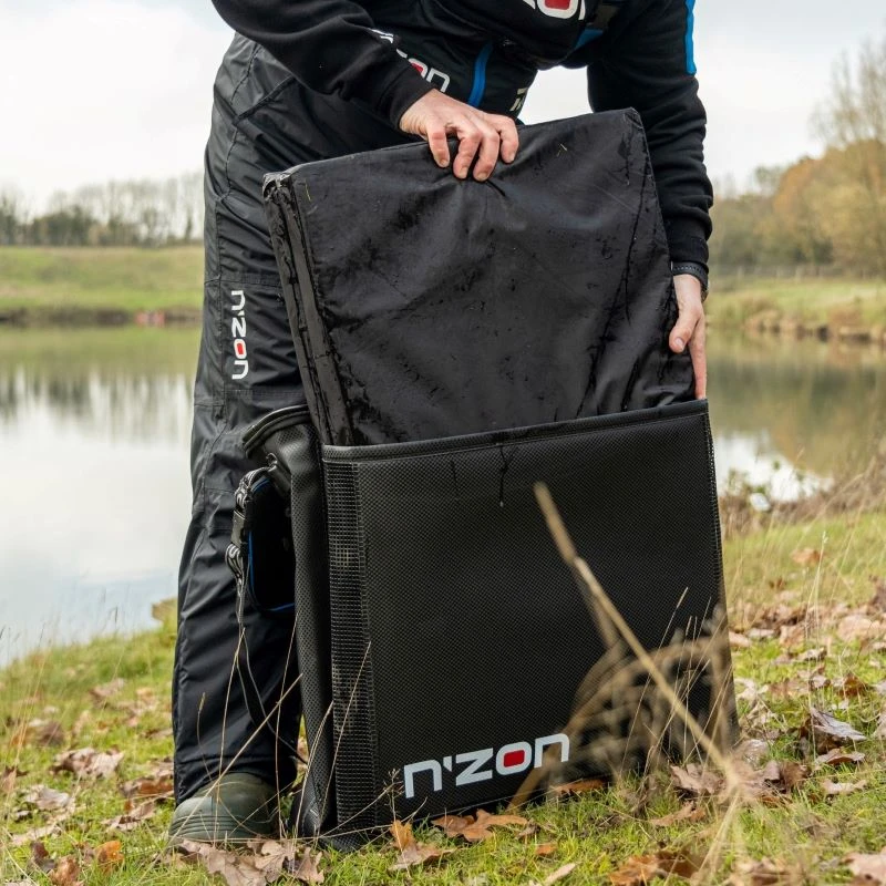 An improved version of the best selling original N’zon EVA keepnet bag that now comes with an additional free draining mesh external pocket to take your riddles N’zon unhooking mats and side trays too. With a main compartment that has enough room to comfortably house two full sized keepnets, plus a landing net head or two. They feature the same completely waterproof heat sealed construction that stops your nets draining away when you travelling home after a match. Â