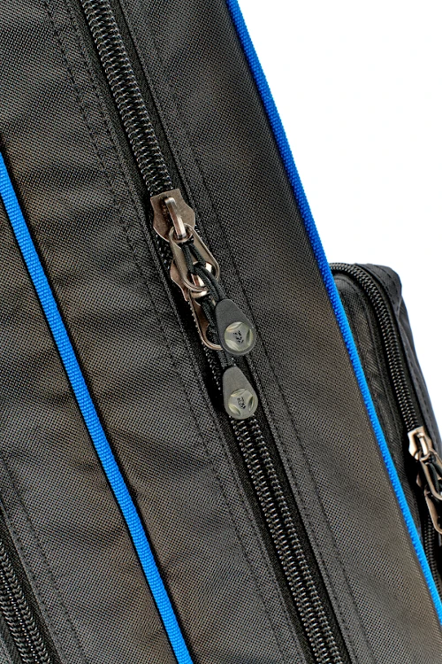 Carry up to 4 fully made up broken down outfits with reels attached fully protected with these hard case designs. Two large tagged zips separate the two individual storage areas with staggered butt locators and padded central diving flaps keeping your reels secure in transit whilst everything else secures in place with Velcro straps. All topped off with a comfy adjustable shoulder strap.