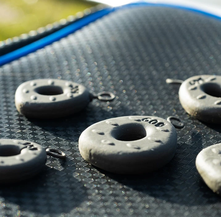 A selection of flat studded weights perfect for holding bottom in faster flowing water and capable of taking pastes and groundbaits by moulding around the frame. Finished with an extra strong swivel and coated in rubberised paint.